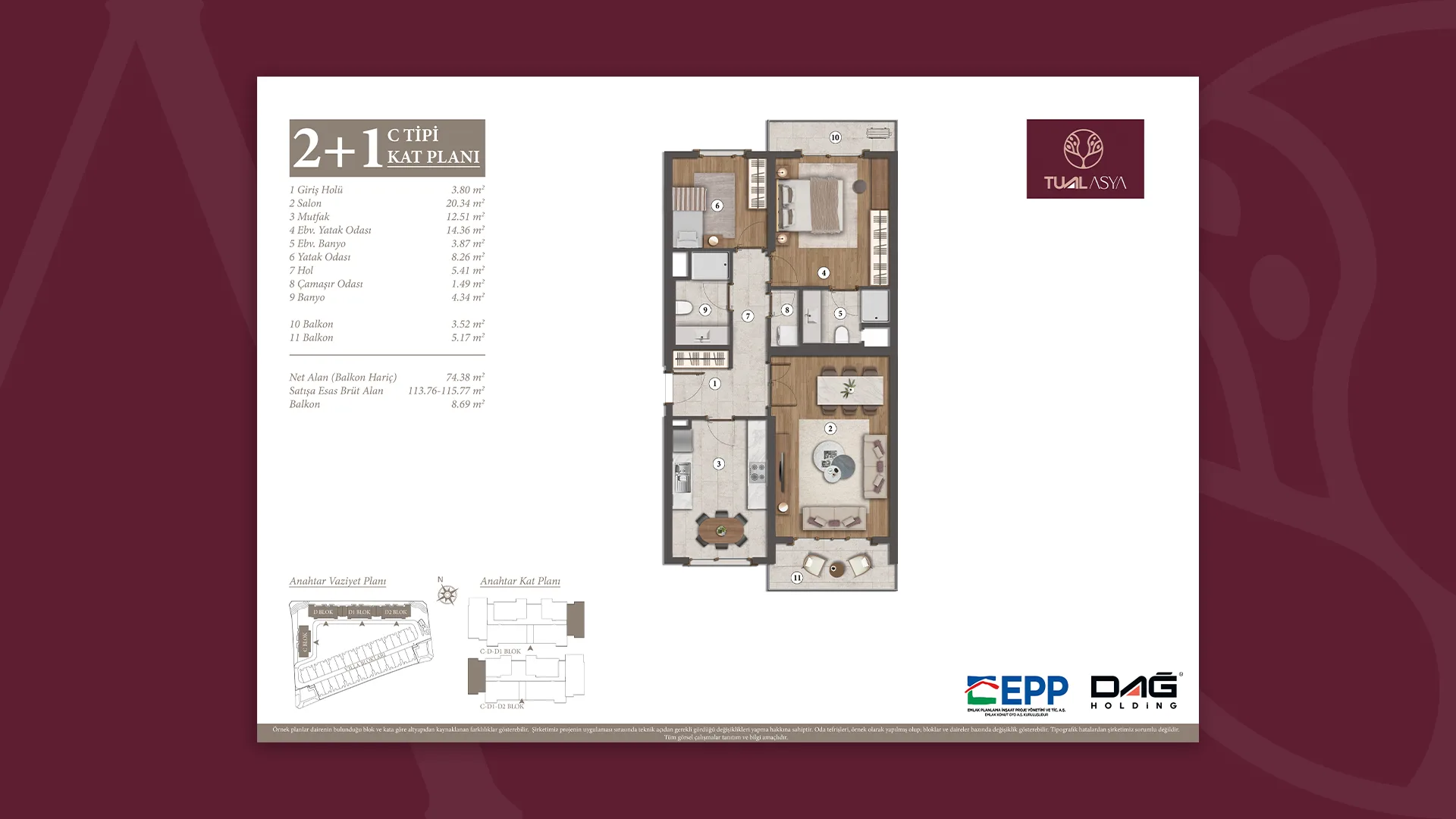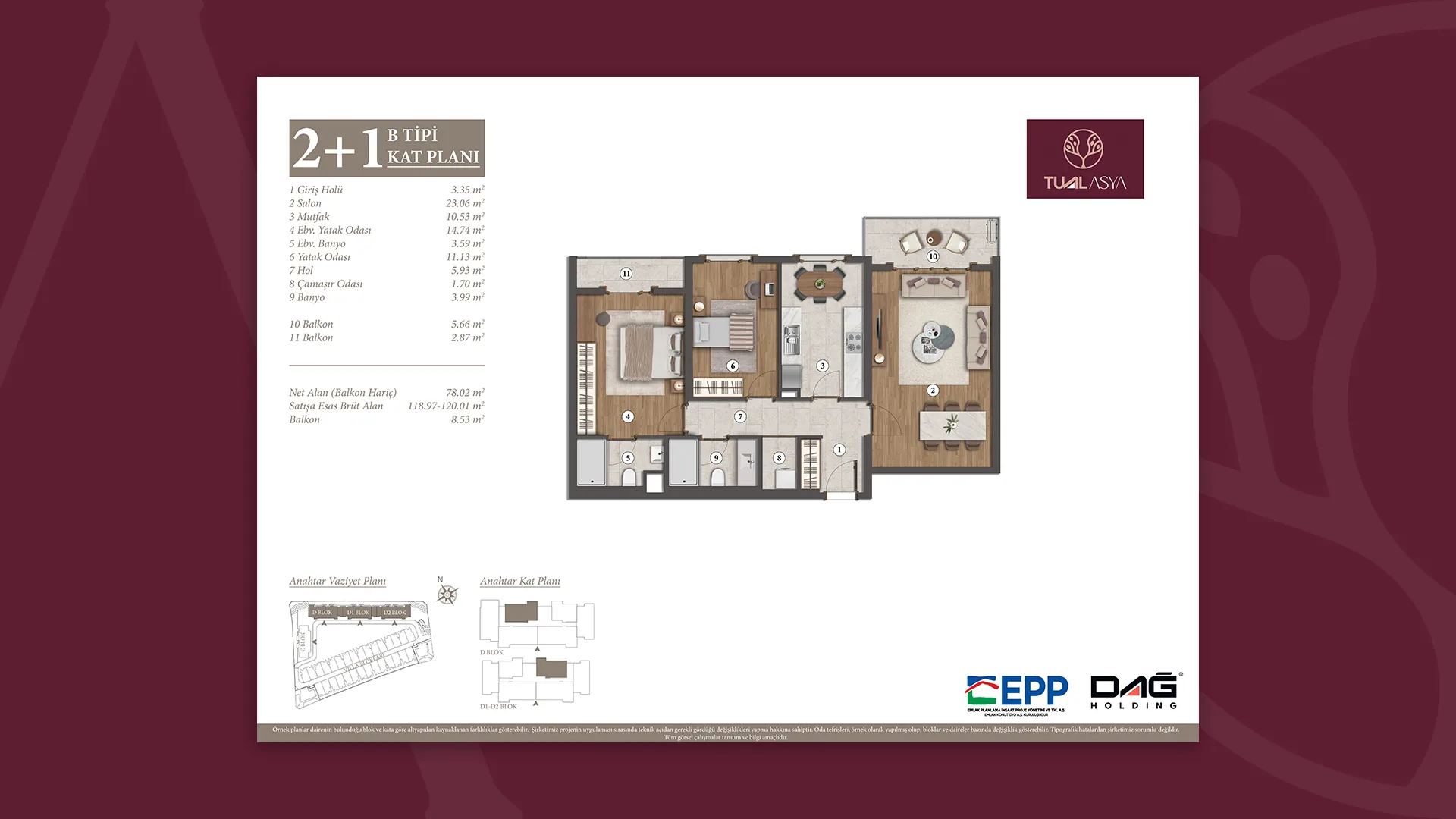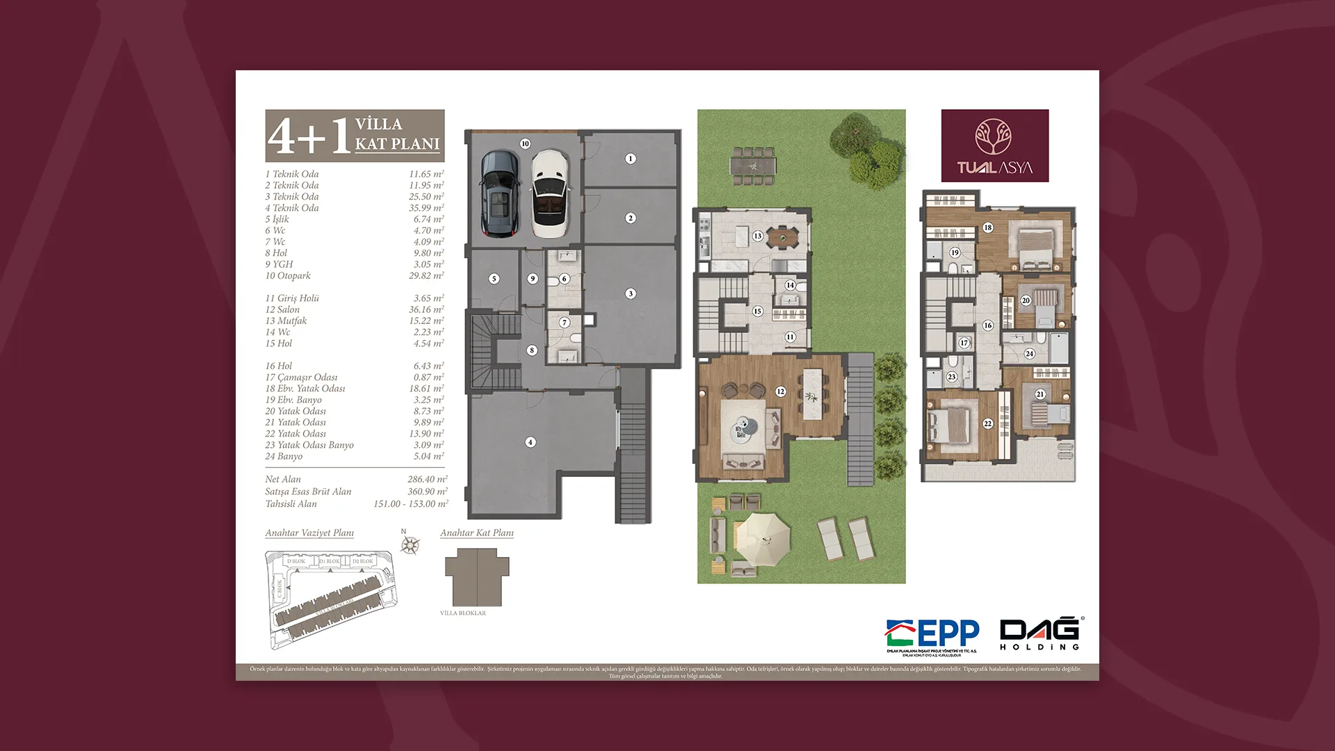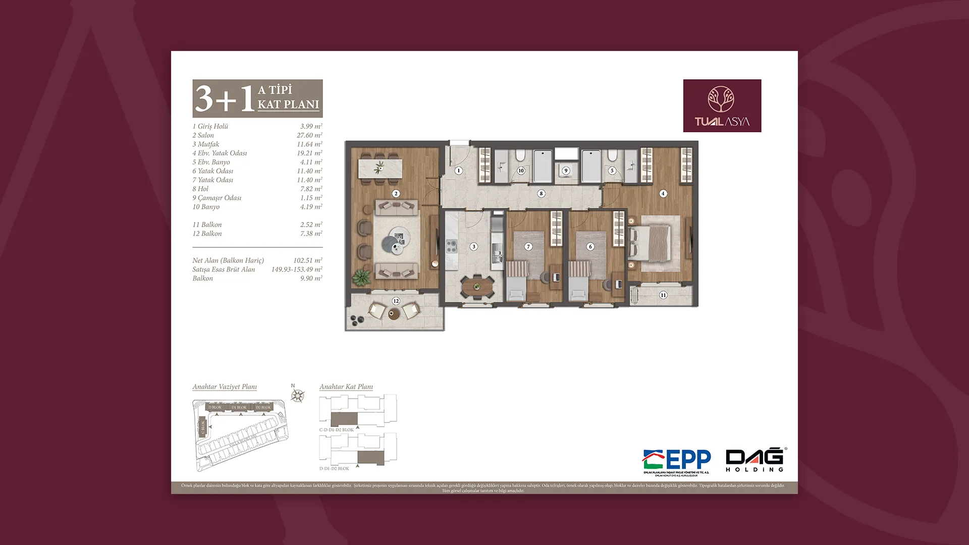 EPP Emlak Planlama İnşaat Proje Yönetimi ve Ticaret A.Ş. onayıyla, projede gerekli gördüğü değişikliği yapma hakkına sahiptir.”