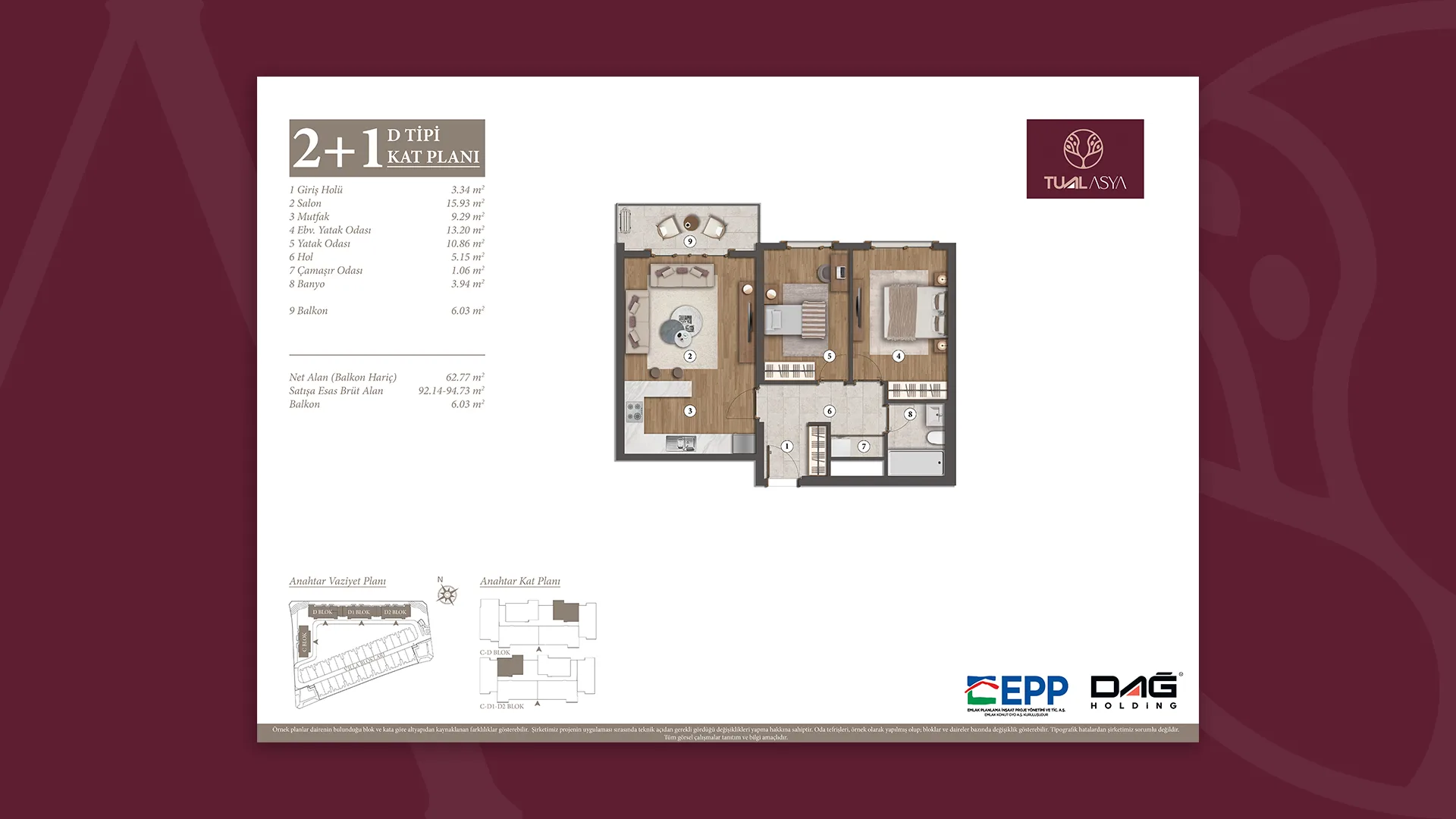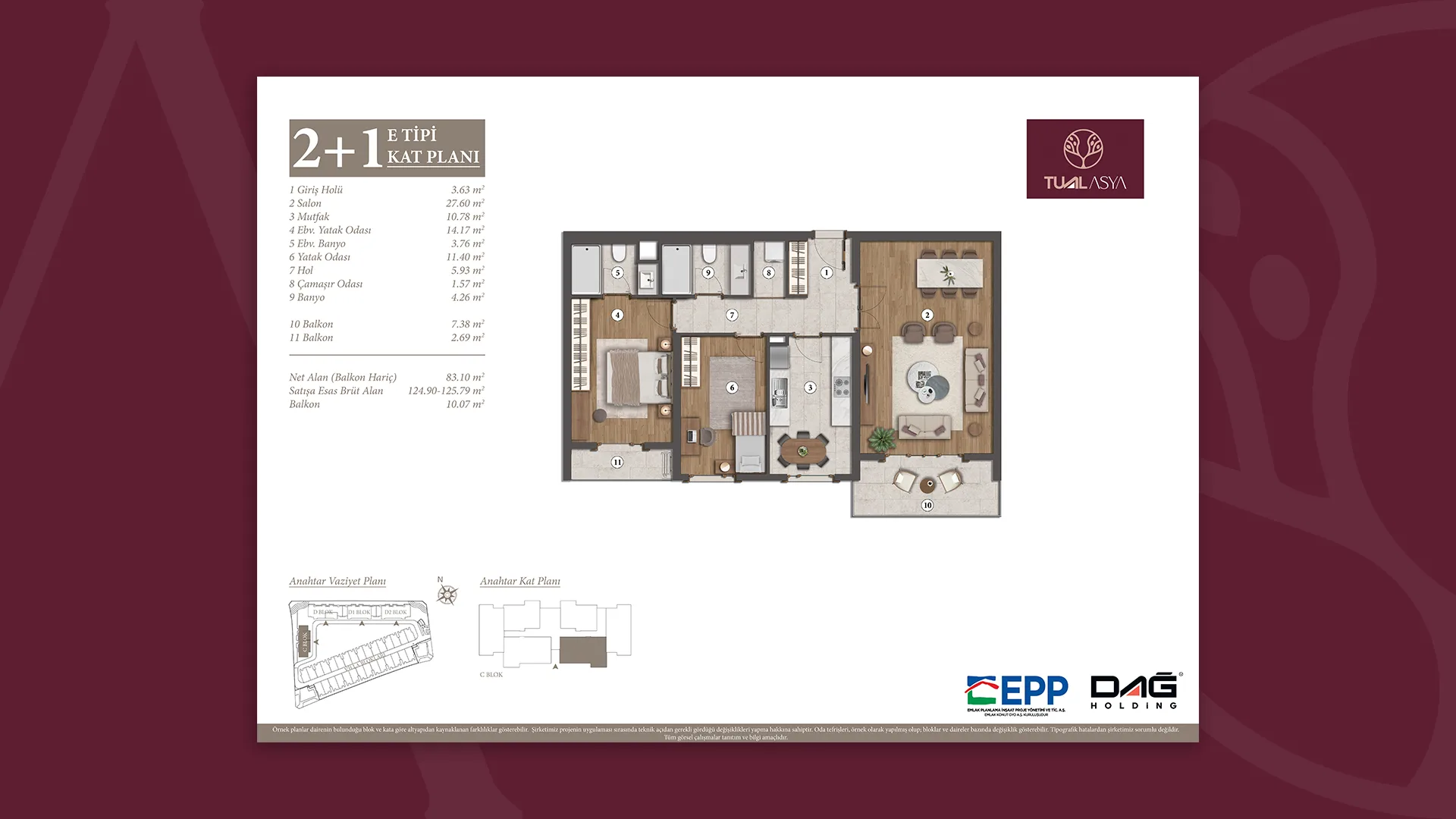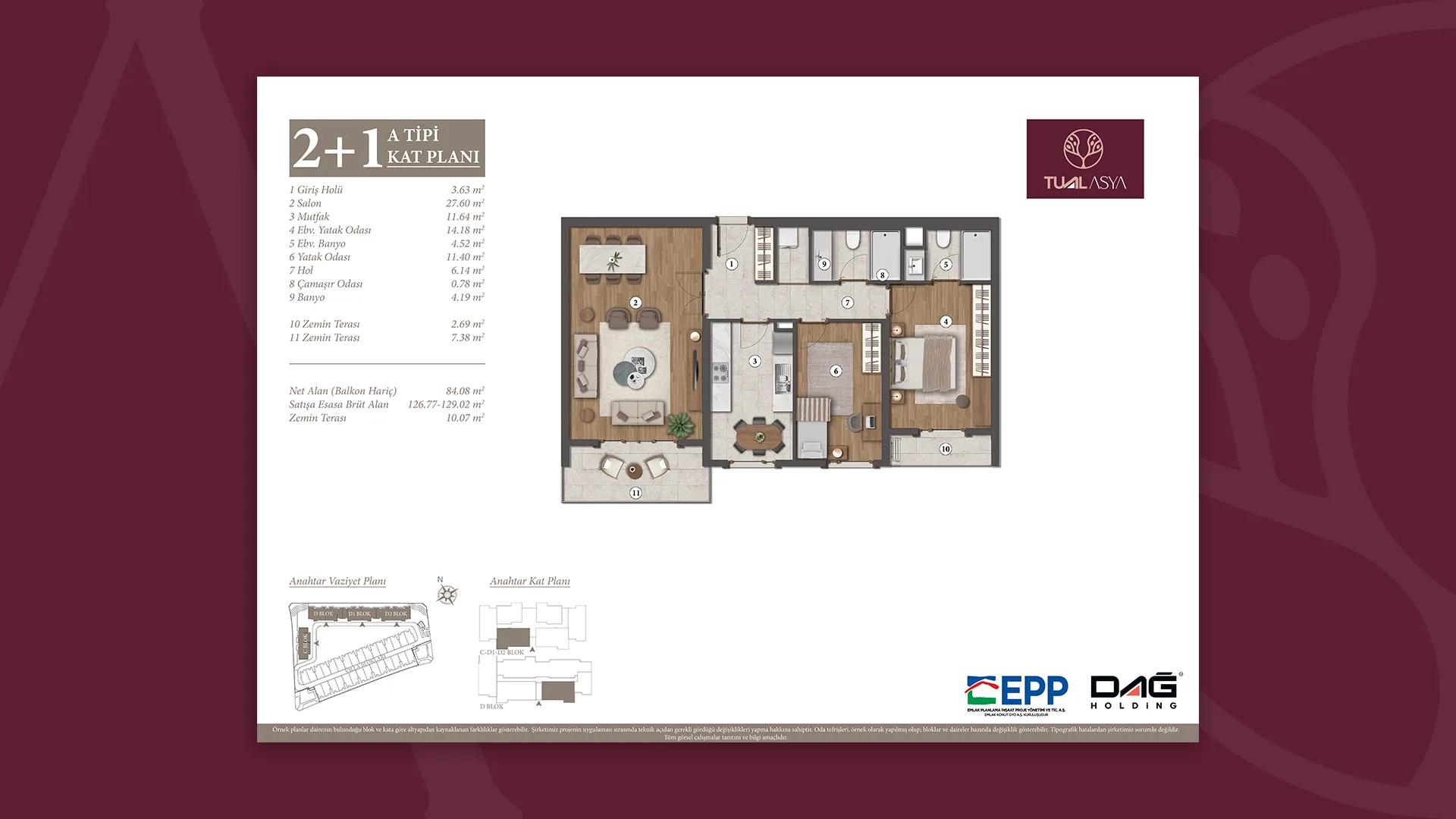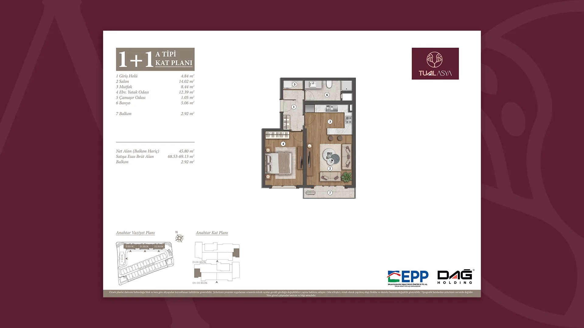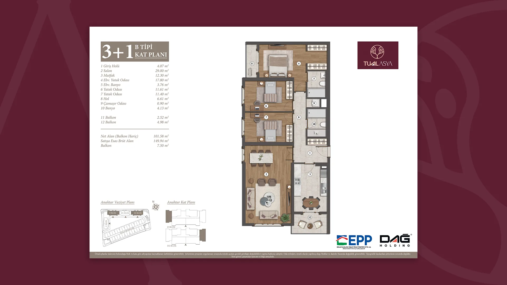 EPP Emlak Planlama İnşaat Proje Yönetimi ve Ticaret A.Ş. onayıyla, projede gerekli gördüğü değişikliği yapma hakkına sahiptir.”